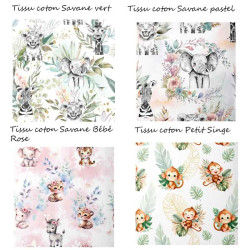 Réalisez votre serviette préférée ! Sélectionnez votre tissu à motifs parmi les nombreux choix (motif animal, fleurs, Liberty véritable, petits cœurs...) et indiquez en personnalisation la couleur du bandeau du haut parmi le nuancier des couleurs de tissu double gaze en photo.