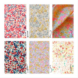 Rajoutez, dans les champs de personnalisation, la couleur du derrière des chaussons (qui peut être différente ou identique au devant), la ou les 2 couleurs des plumes et le numéro de tissu liberty (à consulter sur le nuancier en photo).